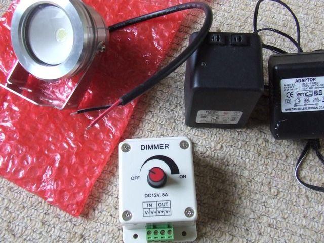 Not entirely happy with the light I then went for a more discreet looking submersible spot light and utilised the old lamp shade to hide its wires. This was a 20'000k spot light that had a nice blue colour and had very high lumen's (pretty bright)