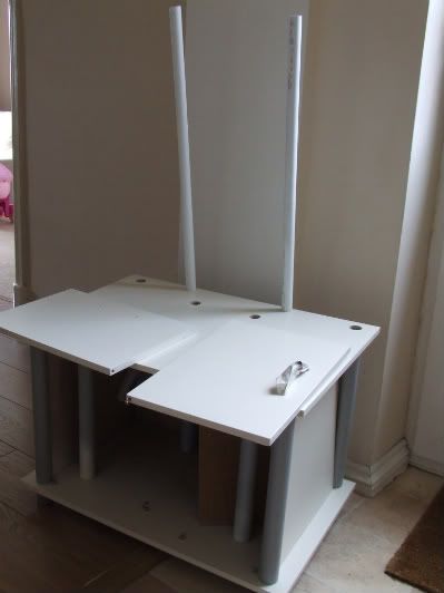 Found a very cheap cabinet and added extra support post inside and drilled holes in top and back to thread some pipework through to exchange the water between sump and tank.